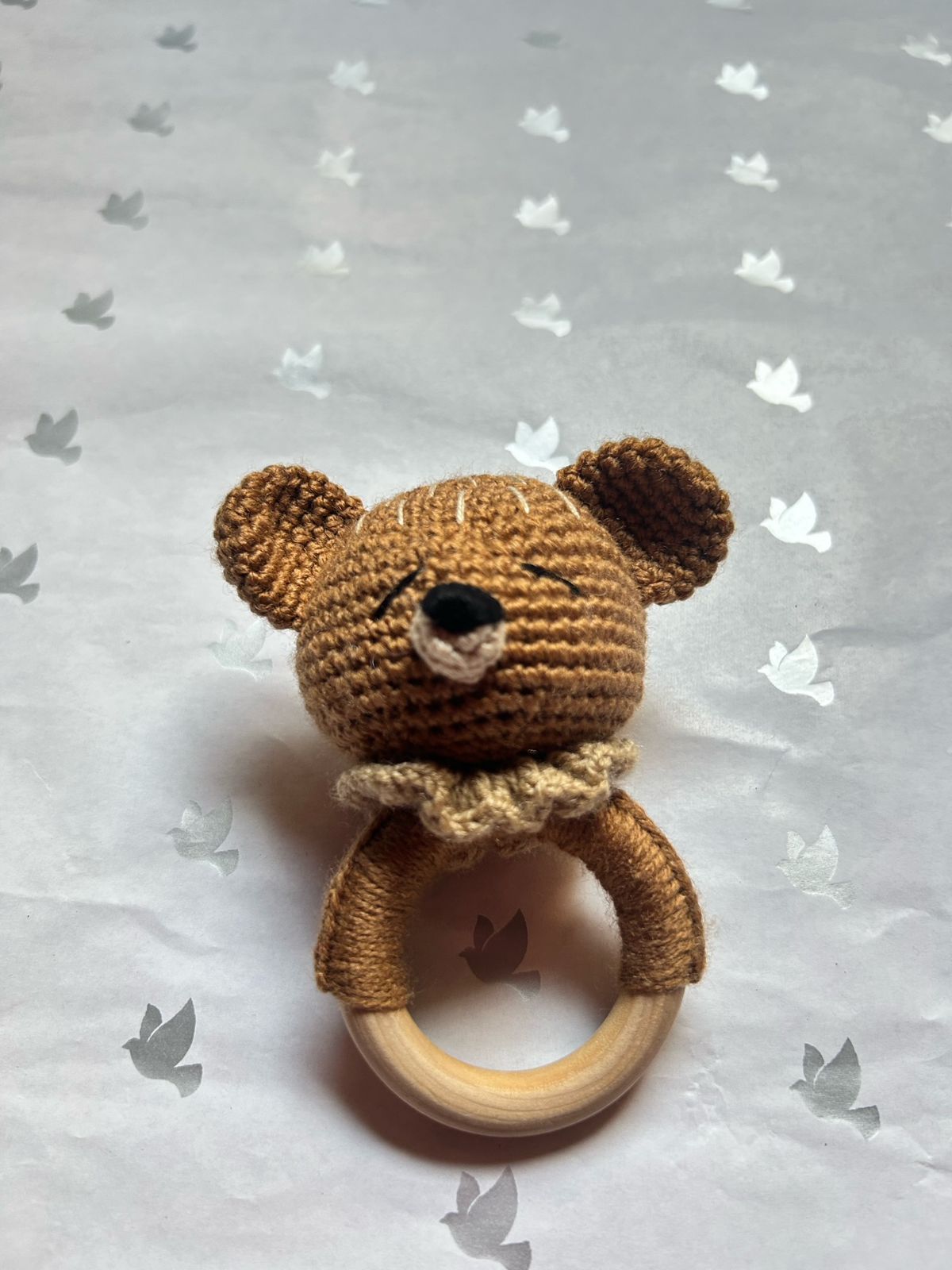 Cute, cuddly, and practical — our handmade Crochet Bear Rattle is a cozy companion and natural teether in one. Crafted with soft, baby-safe yarn and paired with a smooth, natural wooden teether, it soothes sore gums while keeping your baby happily engaged.