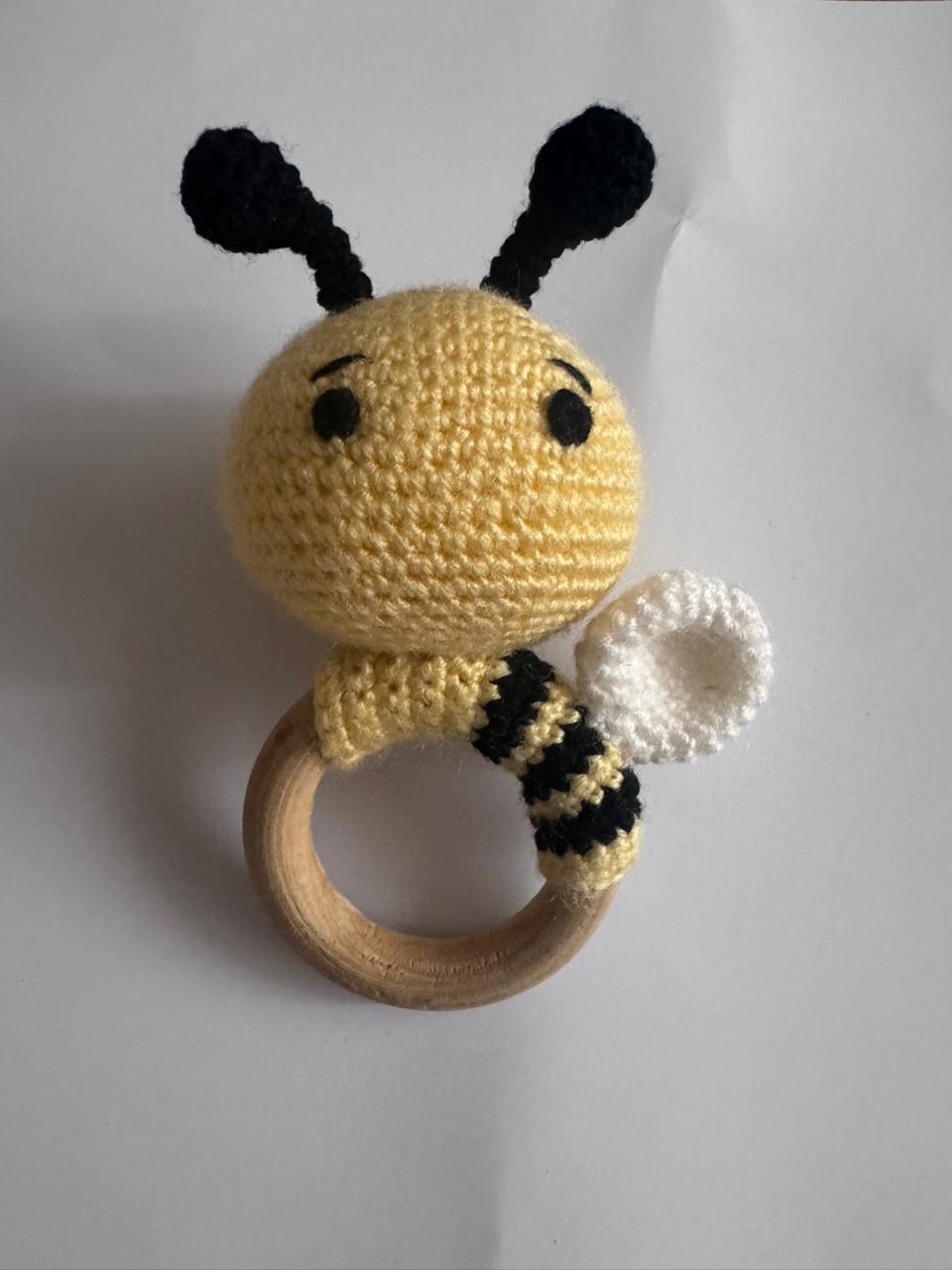 Crochet Bee Rattle with Wooden Teether – Gender Neutral